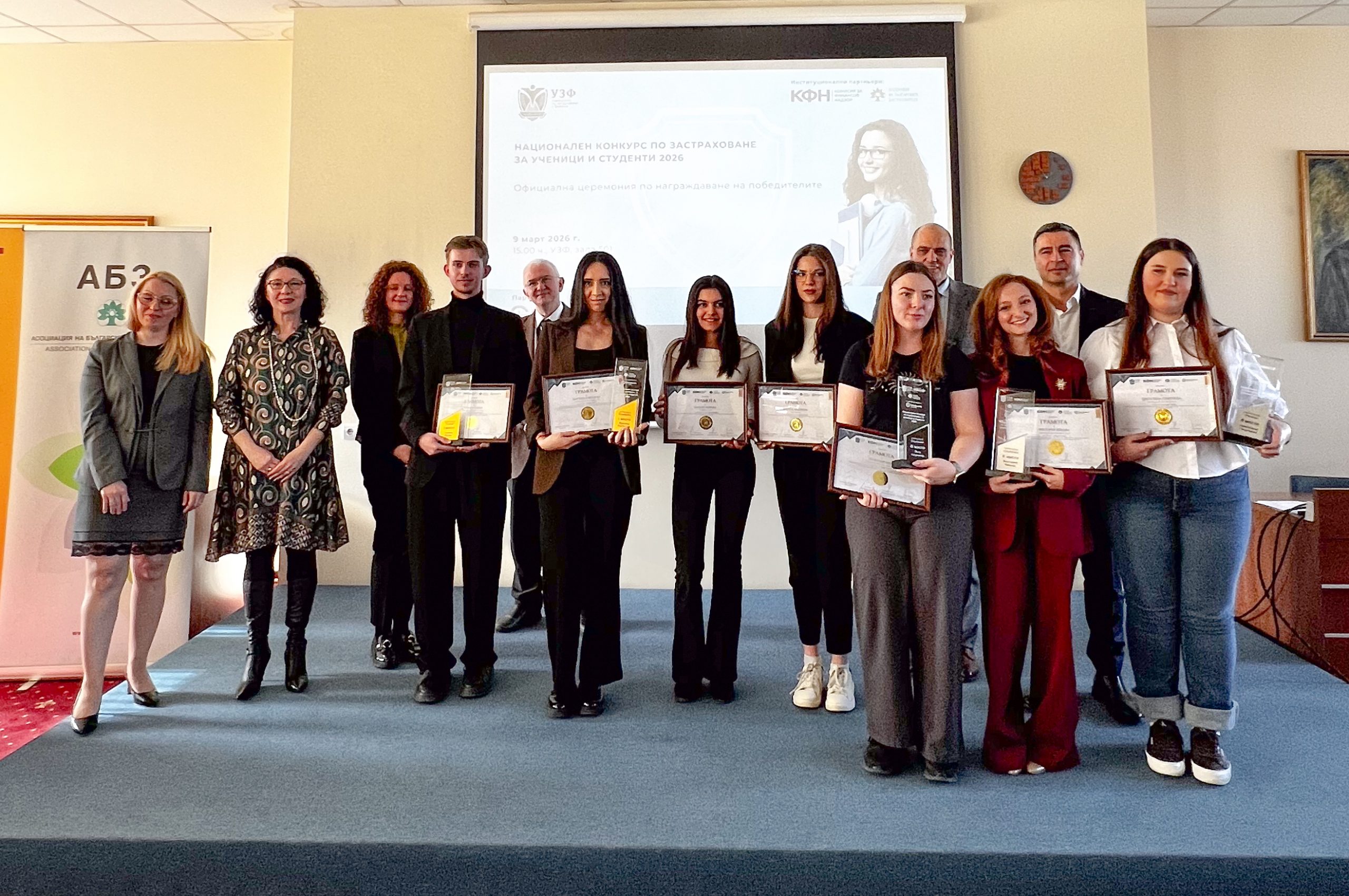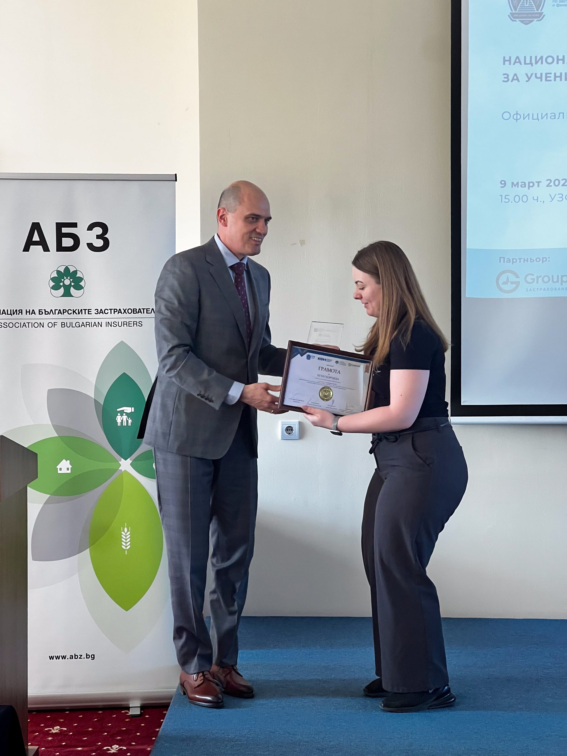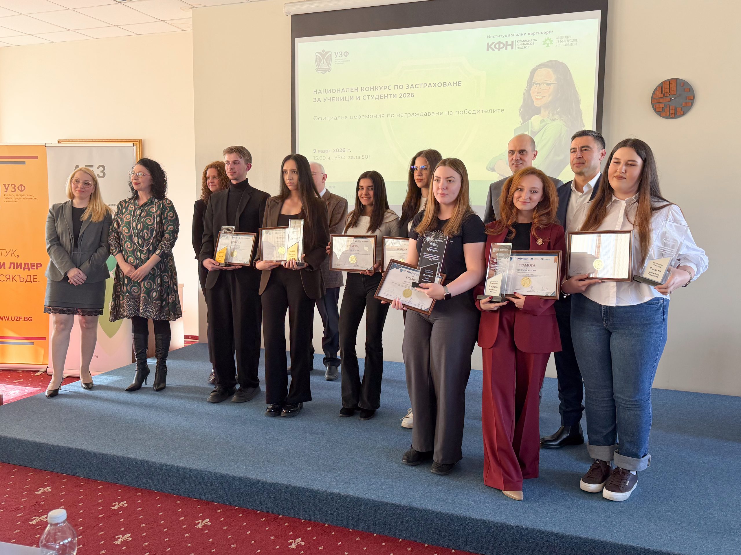 Зам.-председателят на КФН Пламен Данаилов награди най-добрите застрахователи сред студентите и учениците. Призовете бяха част от Националния конкурс по застраховане за ученици и студенти, огранизиран от Университета по застраховане и финанси. Партньори на събитието бяха КФН, Асоциацията на българските застрахователи и Groupama застраховане.